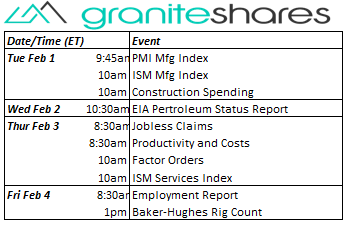 • PMI and ISM indexes this week along with jobless claims with the week capped off with Friday’s employment report.