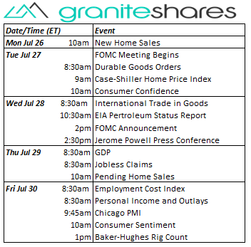 • Full week highlighted by a 2-day FOMC meeting beginning Tuesday and GDP Thursday.