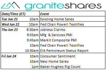 • Jerome Powell Testimony before Congress Wednesday and Thursday, Home Sales data and Mfg and Servies PMIs headline this week’s data releases.