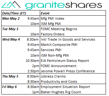 • Intl Trade in Goods and Services, PMI releases, FOMC Announcement and Jerome Powell Press Conference on Wednesday.