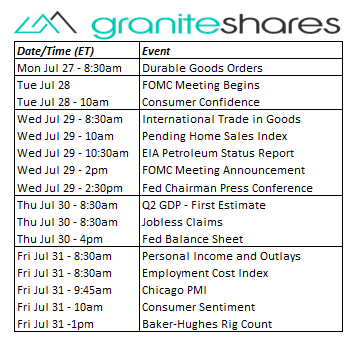 • Busy data-week including 2-day FOMC meeting beginning Tuesday and the first estimate of 2nd quarter GDP on Thursday.