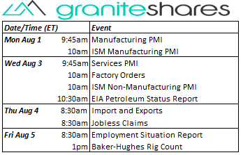 • Manufacturing PMI and ISM Mfg PMI Monday.