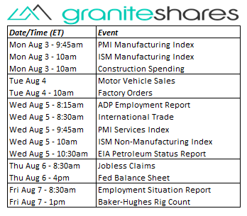 • Another full data week with PMI and ISM manufacturing and services index releases and capped off with the employment situation report on Friday.