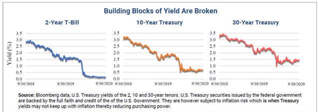 Even before the outbreak of COVID-19, opportunities for meaningful yield had already been receding beyond reach. Indeed, the last time the Fed dropped interest rates to zero, it took seven years before the courage could be mustered to raise rates once more. Currently, there are no forecasts for positive rates resurfacing—the outlook for income has been indefinitely postponed.